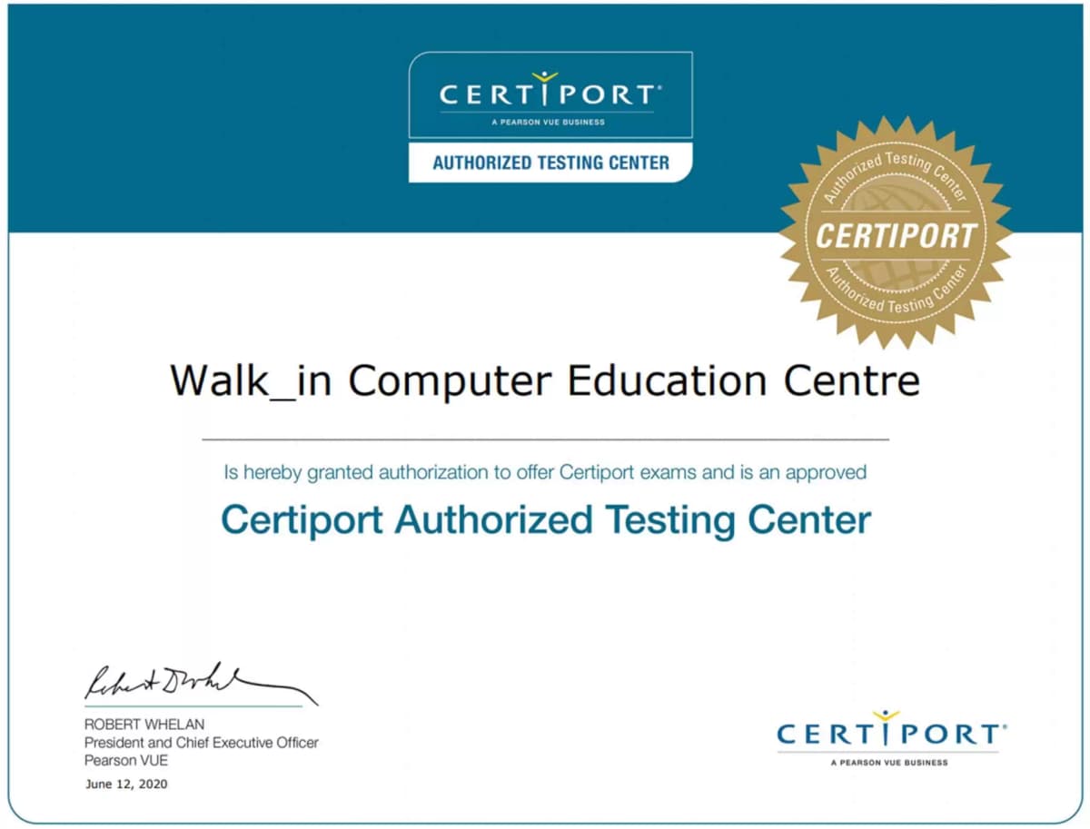 Walk_in Computer Education Centre is Certiport Authoirised Testing Center. After you purchase the voucher, we will send your Exam voucher within 3-5 Working days. Our team will revert via email to check with you your preferred date and time slot. You can take the exam on Certiport Platform at our Training Center